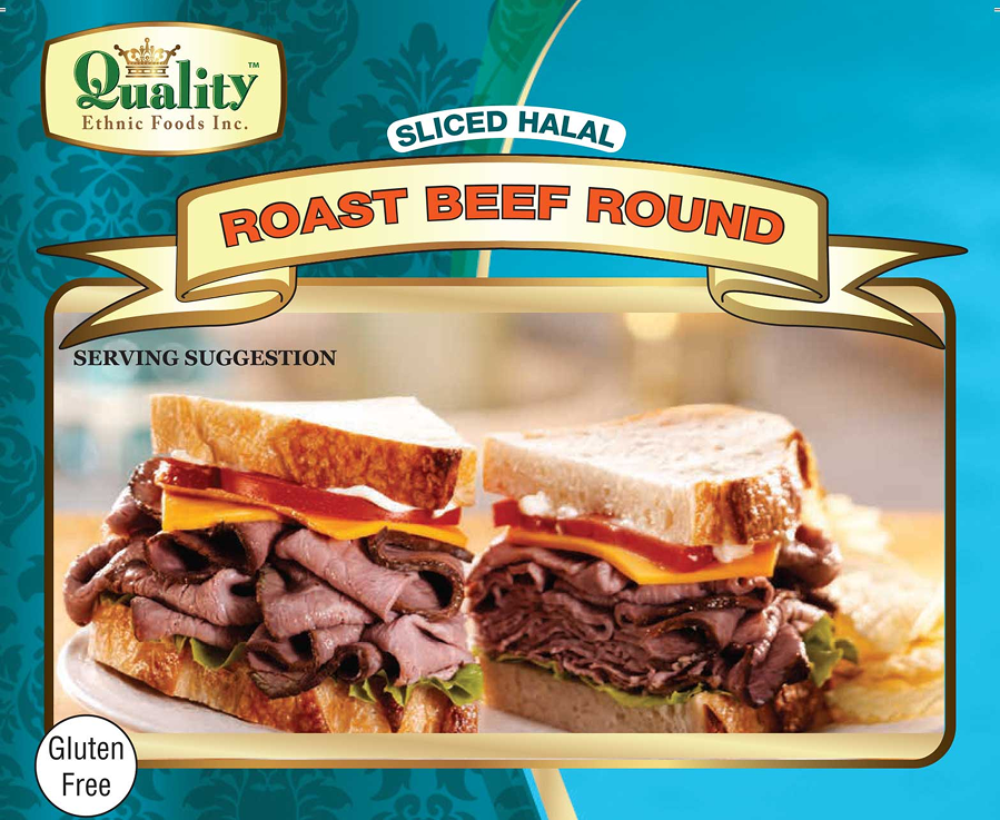 Roast Beef Round Nutrition Facts Serving size 3oz (84g) Servings Per Container 4 Amount Per Serving Calories 100 Fat Cal. 35 % Daily Value* Total Fat 0g 4% Saturated Fat 0g 7% Trans 0g Cholestrol 35mg 11% Sodium 1080mg 44% Total Carbohydrate 0g 0% Dietary Fiber 0g 0% Total Sugars 0g Includes 0g Added Sugars 0% Protein 20g Vitamins A 0mcg 0% Calcium 0mg 0% Iron 0mg 0% Potassium 0mg 0% *Percent Daily Values are based on 2,000 calorie diet. Calories per gram: Fat 9 Carbohydrate 4 Protien 4 Ingredients halal beef, Water, Dextrose, Sodium Tripolyphosphate, Salt, Maltodextrin, Natural Flavors. Coated with: Dextrose, Salt, Caramel Color, Hydrolyzed Corn Protein, Onion Powder, Garlic Powder, Spice Extractive.